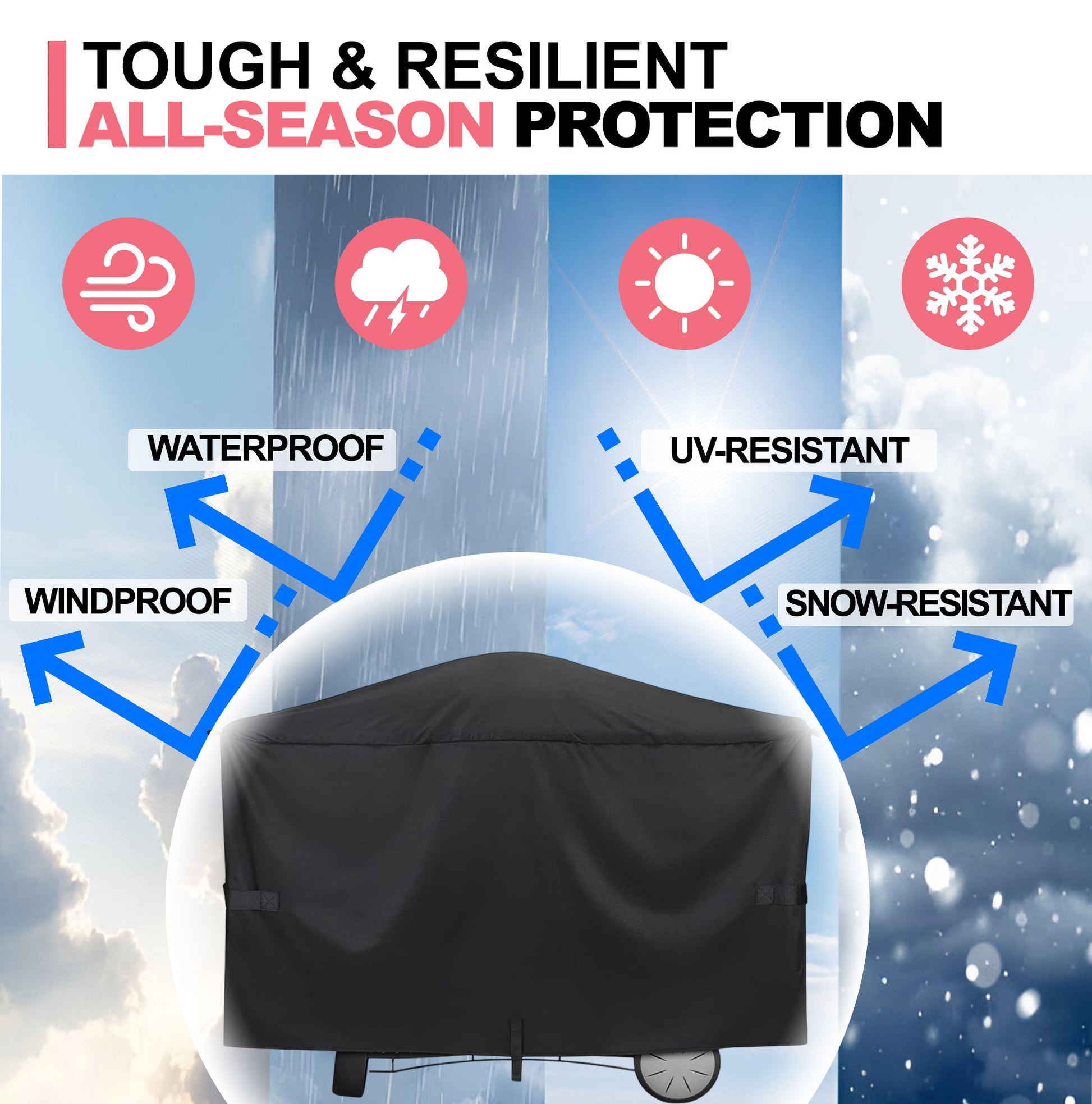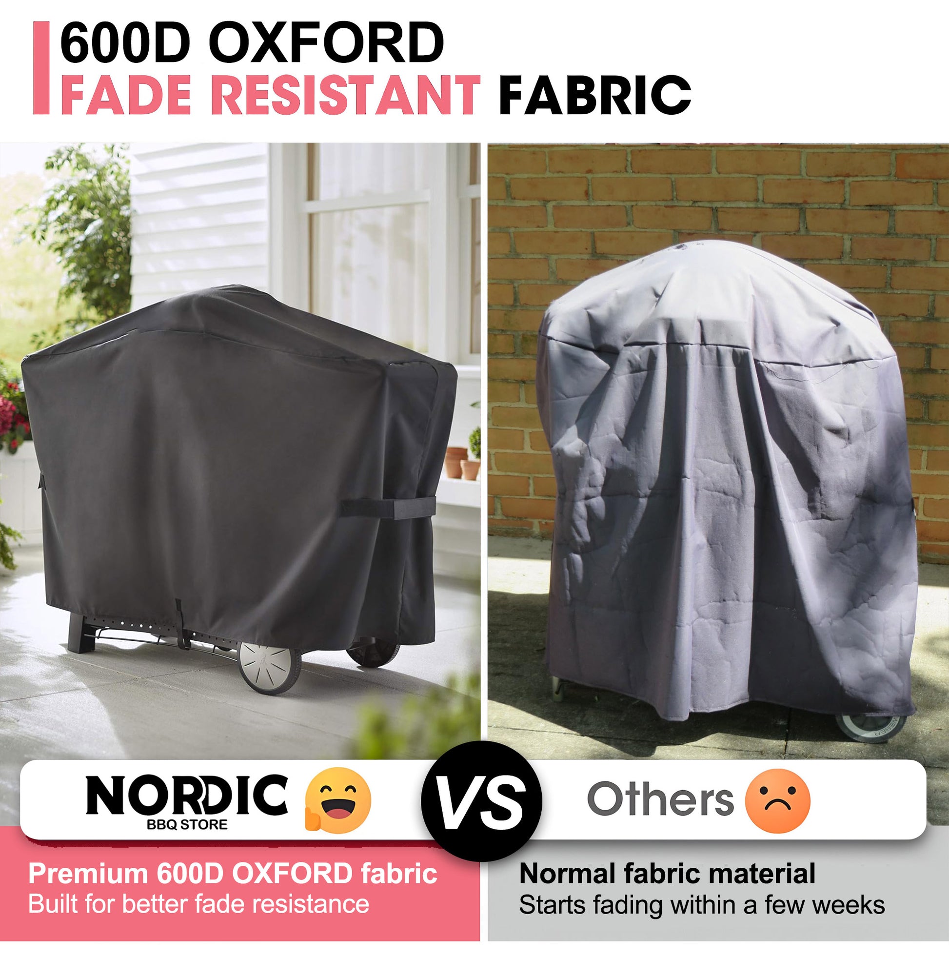 ✅【Premium 600D Oxford-stof】➤ Vores grillbetræk er lavet af kraftigt, falmebestandigt 600D Oxford-stof med en vandtæt PU-belægning, der sikrer overlegen holdbarhed og langvarig beskyttelse. Med højkvalitets forstærket syning overgår dette betræk standard OEM-muligheder i både styrke og pålidelighed. Tykkere og tungere end de fleste betræk, hvilket giver øget modstand mod UV-stråler, regn, sne, støv og andre barske elementer—så din grill er beskyttet året rundt.