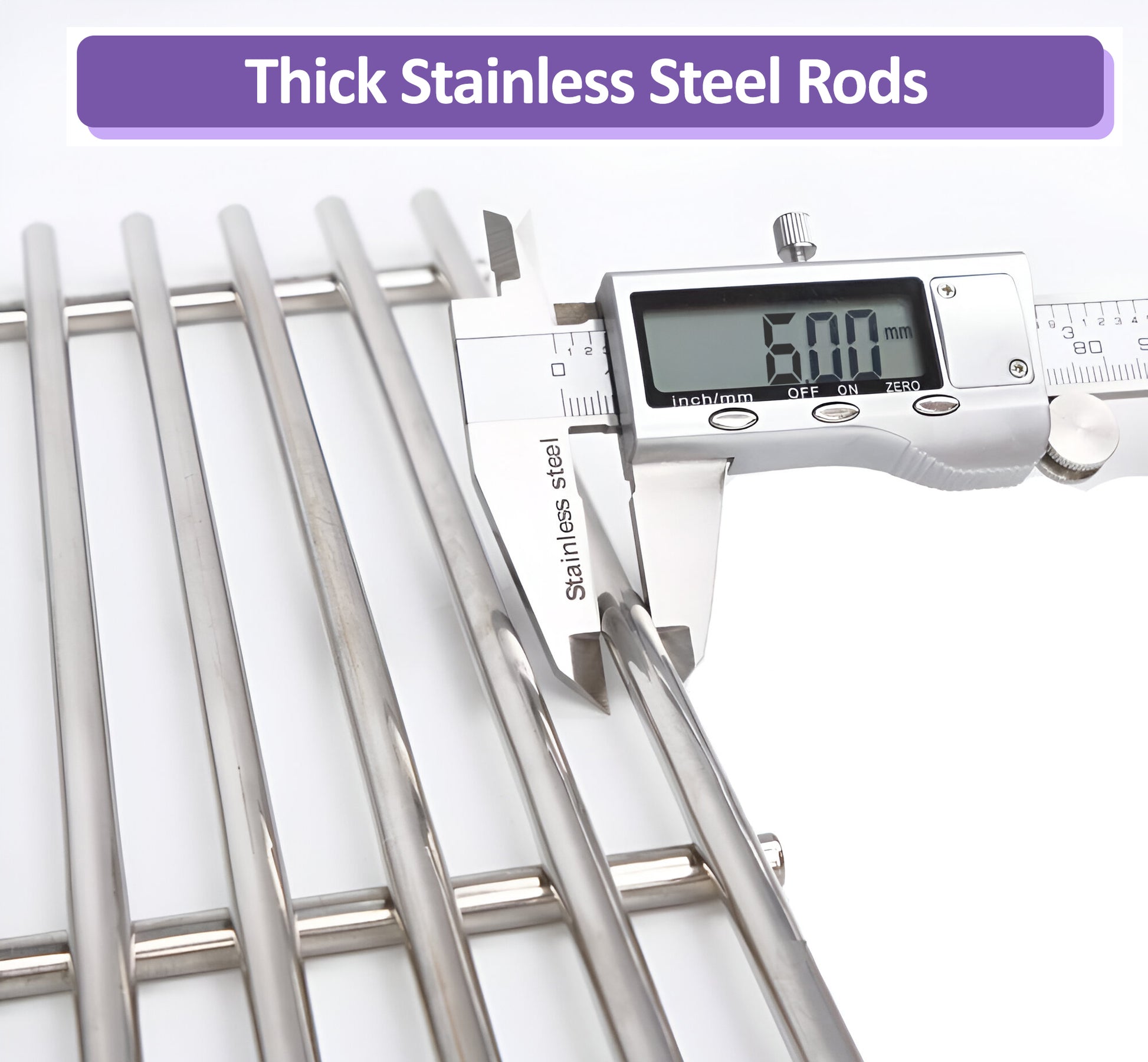 ✅ Rustfrit stål: Weber grillriste er fremstillet af fødevaregodkendt rustfrit stål af høj kvalitet, hvilket sikrer korrosions- og oxidationsbestandighed samt sikker madlavning. Med en ståltystkelse på 6 mm er disse reservedele meget holdbare og modstandsdygtige over for bøjning og deformation.