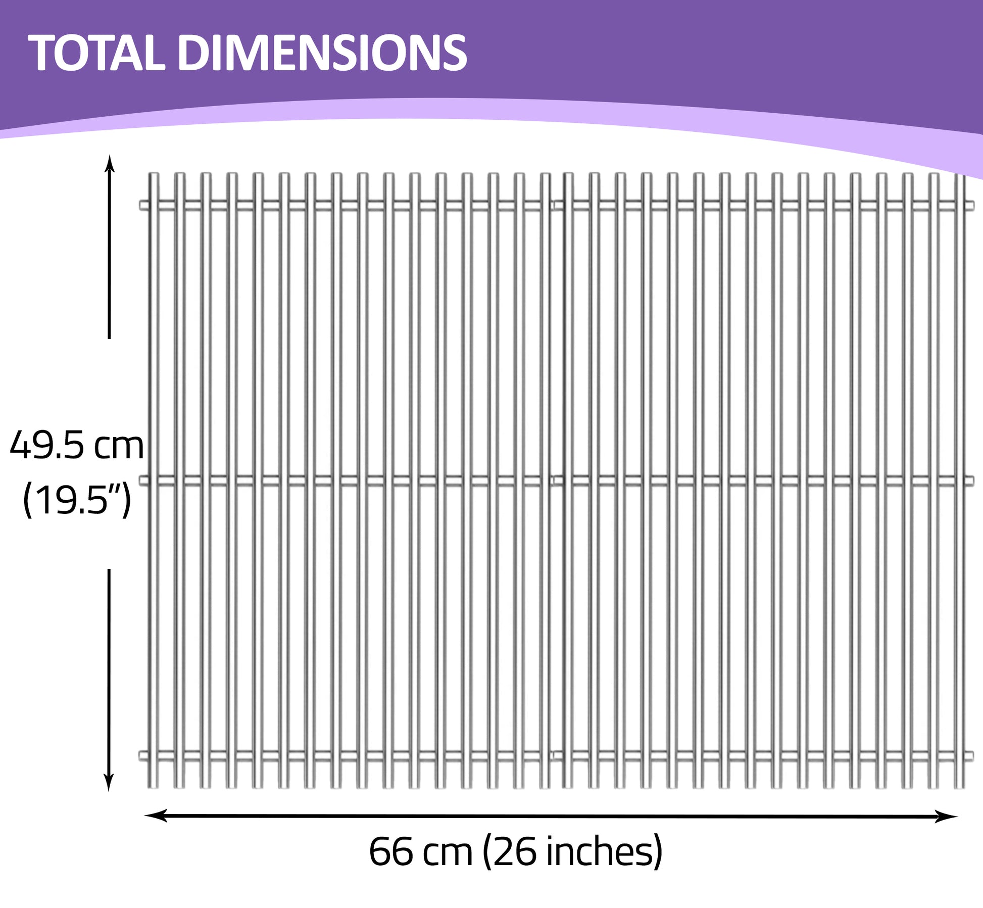 ✅ Dimensioner: Hver grillrist måler 49,5 cm (længde) x 33 cm (bredde) 🔥 De samlede mål er 49,5 cm (længde) x 66 cm (bredde).