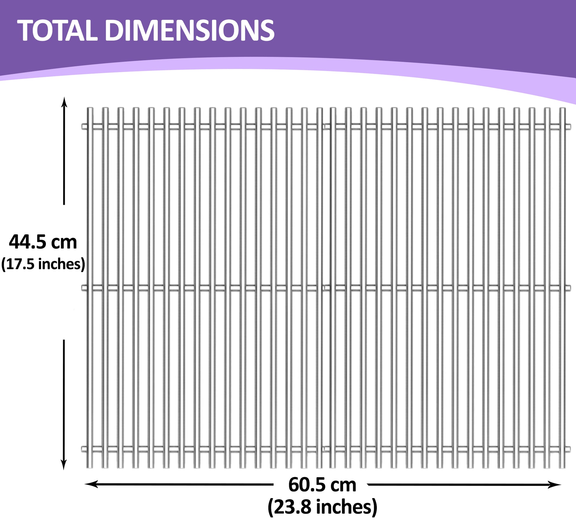 ✅ Dimensioner: Hver grillrist måler 44,5 cm (Længde) x 30,2 cm (Bredde) 🔥Mens de samlede mål er 44,5 cm (Længde) x 60,5 cm (Bredde).