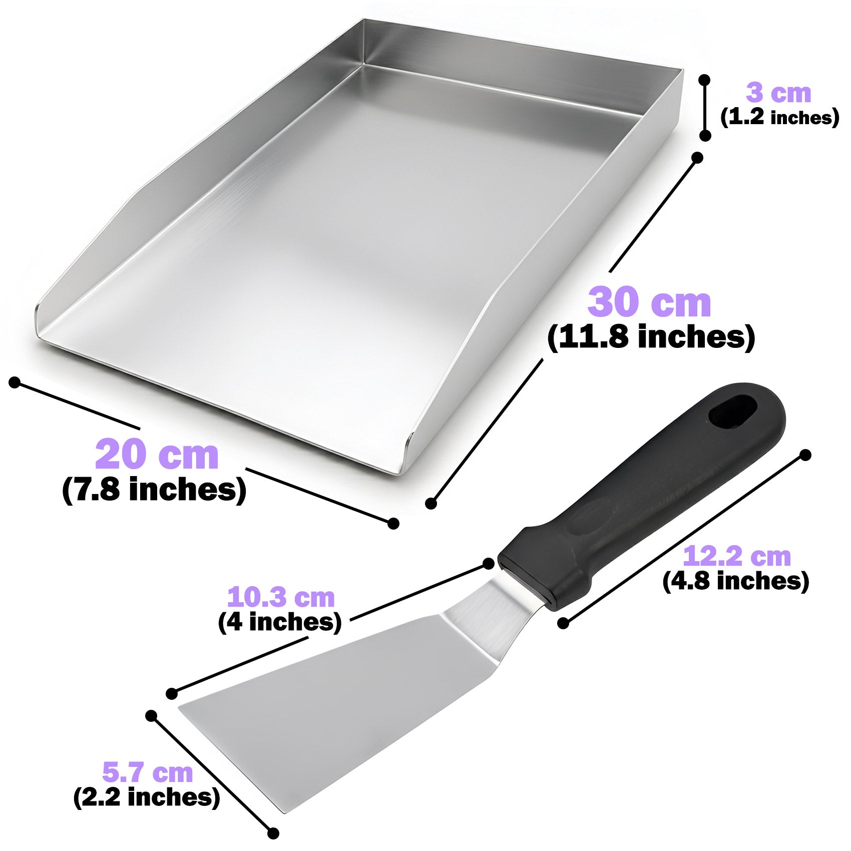 30 × 20 cm Stainless Steel BBQ Griddle Plate / Plancha – Universal Grill Griddle Accessory with Spatula