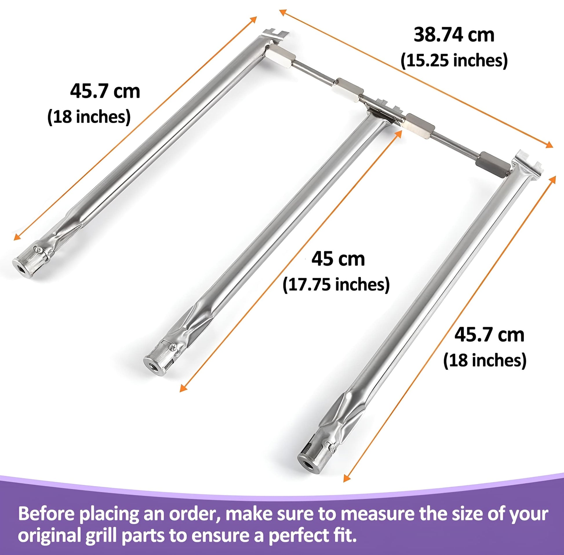 ✅ Compatibilità: Bruciatori di ricambio per Weber Spirit E-310, E-320, E-330, S-310, S-320, S-330, SP-310, SP-320, SP-330, GS4 Spirit II E-310, II E-320, II S-310, II S-320 con comandi frontali. Modelli compatibili: 46510001, 46700401, 47510001, 46500401, 47513101, 46410674, 46513101, 46700574, 46810001, 46500401, 47700401, 46800401, 47800401, 49010001, 45010001 e altri barbecue Weber Spirit e Spirit II a 3 bruciatori. (Non adatto ai barbecue Weber Spirit 300 con manopole di controllo laterali.)