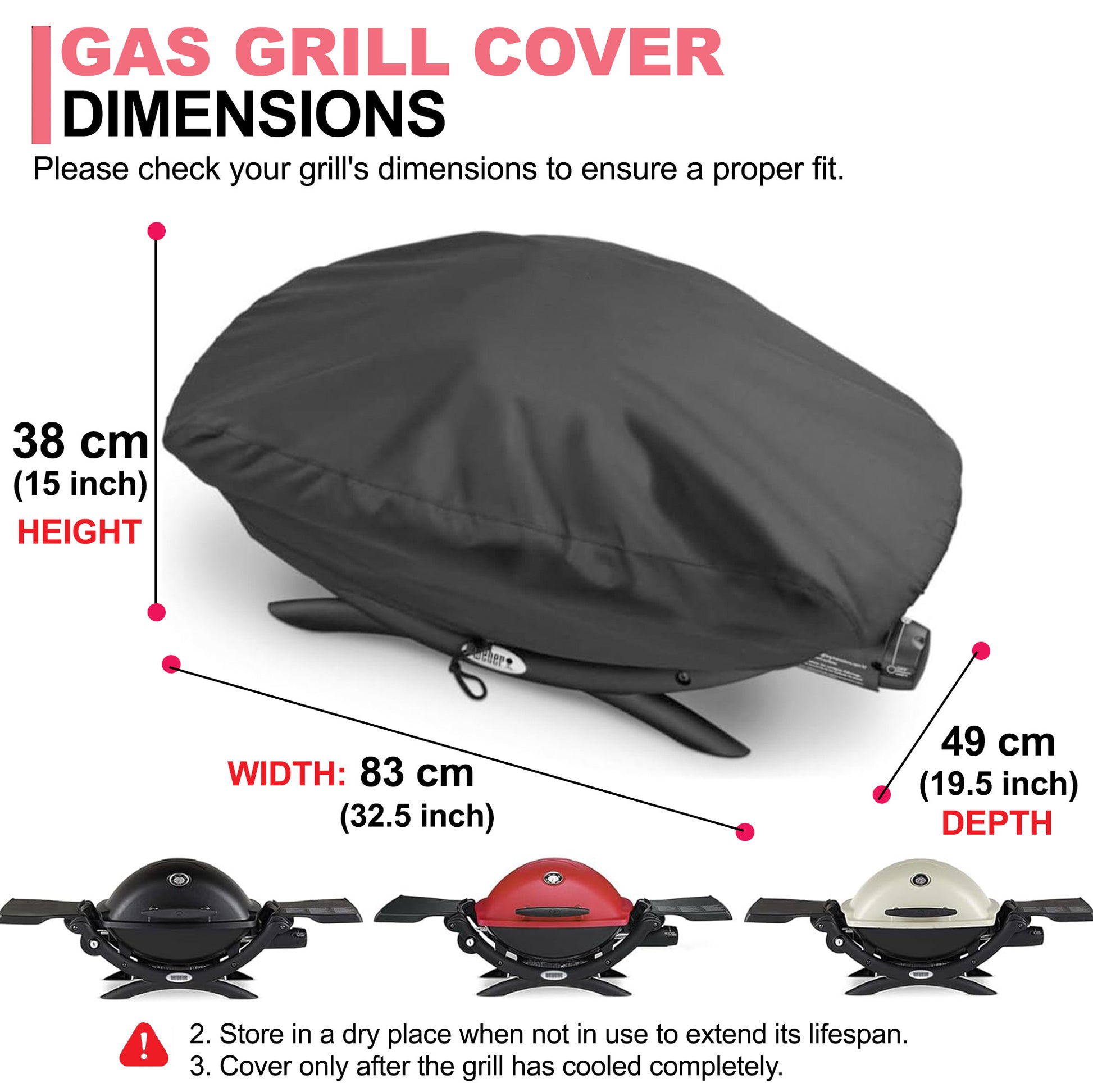 7111 BBQ Grila Pārvalks Weber Q200 & Q2000 sērijas griliem, 600D Oxford audums, izturīgs & ūdensnecaurlaidīgs, PU pārklājums Weber Q200, Q220, Q240, Q2000, Q2200, Q2400 gāzes griliem (83 G x 49 P x 38 A cm)