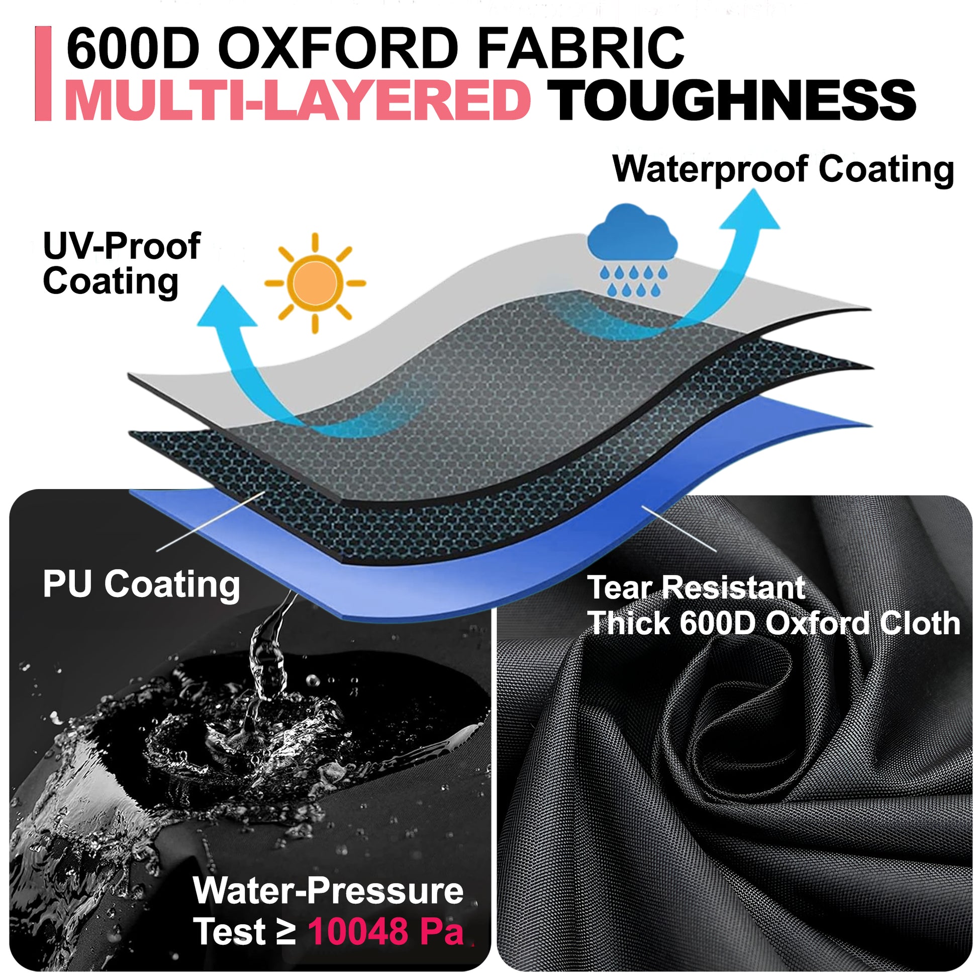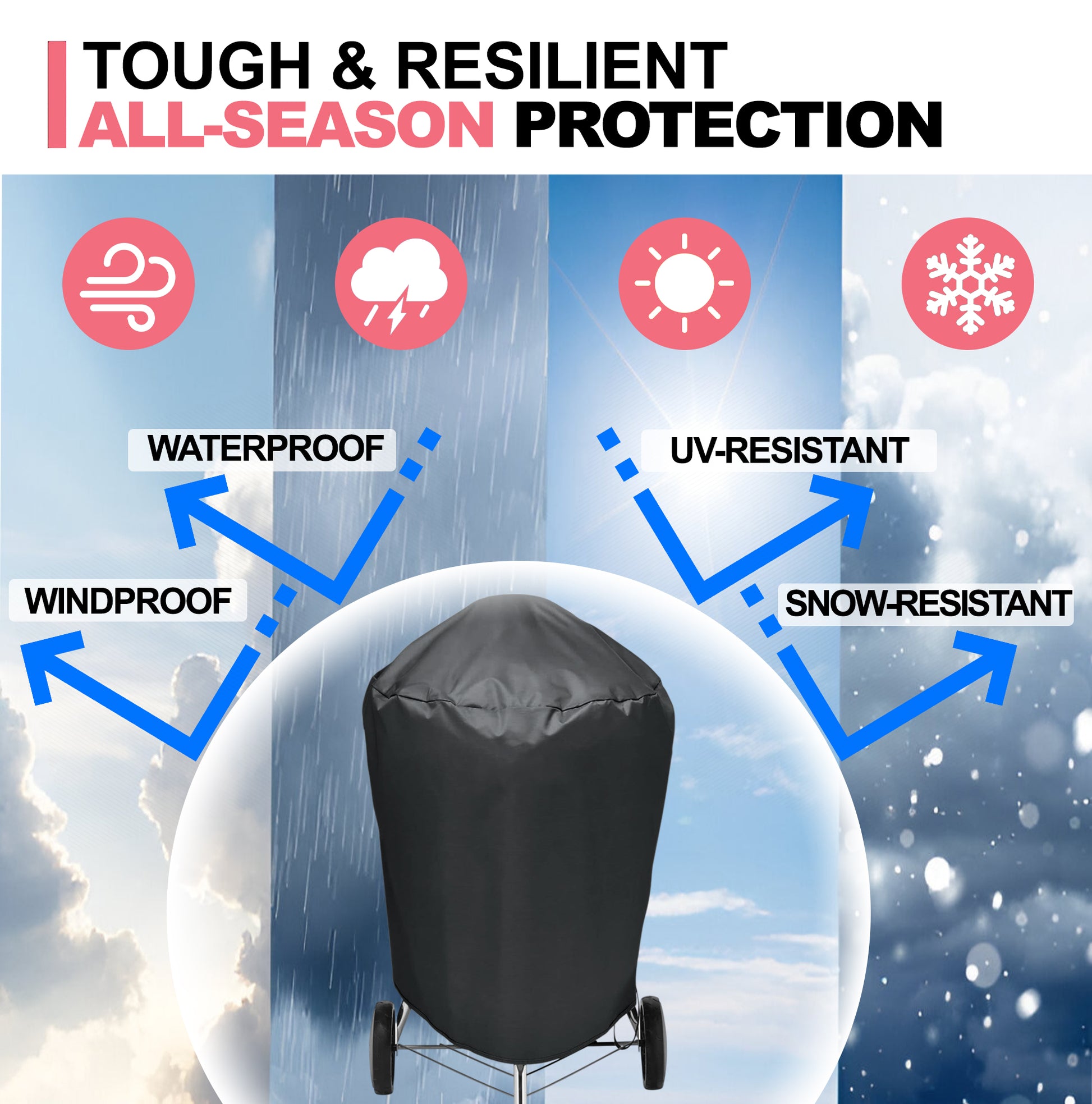 ✅【Premium 600D Oxford Stoff】➤ Laget av slitesterkt, falmebestandig 600D Oxford-stoff med vanntett PU-belegg for langvarig beskyttelse. Høykvalitets forsterkede sømmer gir bedre holdbarhet og pålitelighet enn standard OEM-trekk. Tykkere og tyngre enn de fleste trekk, og gir overlegen beskyttelse mot UV-stråler, regn, snø, støv og tøffe værforhold – slik at grillen din er beskyttet året rundt.