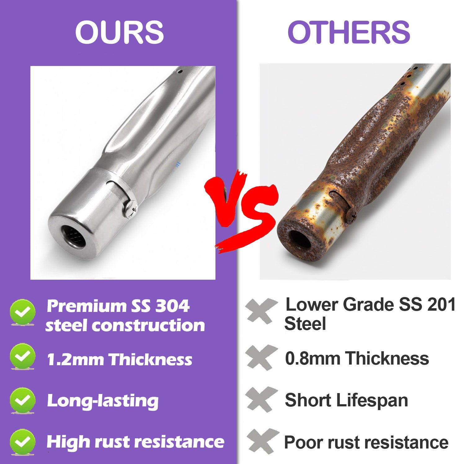 Bring your grill back to peak condition with these premium replacement grill burners for Napoleon 4-burner grills. Designed for an exact fit and dependable long-term use, these 1.2 mm thick SS 304 stainless steel burners help restore even heat distribution and ensure consistent flame performance across your entire cooking surface.