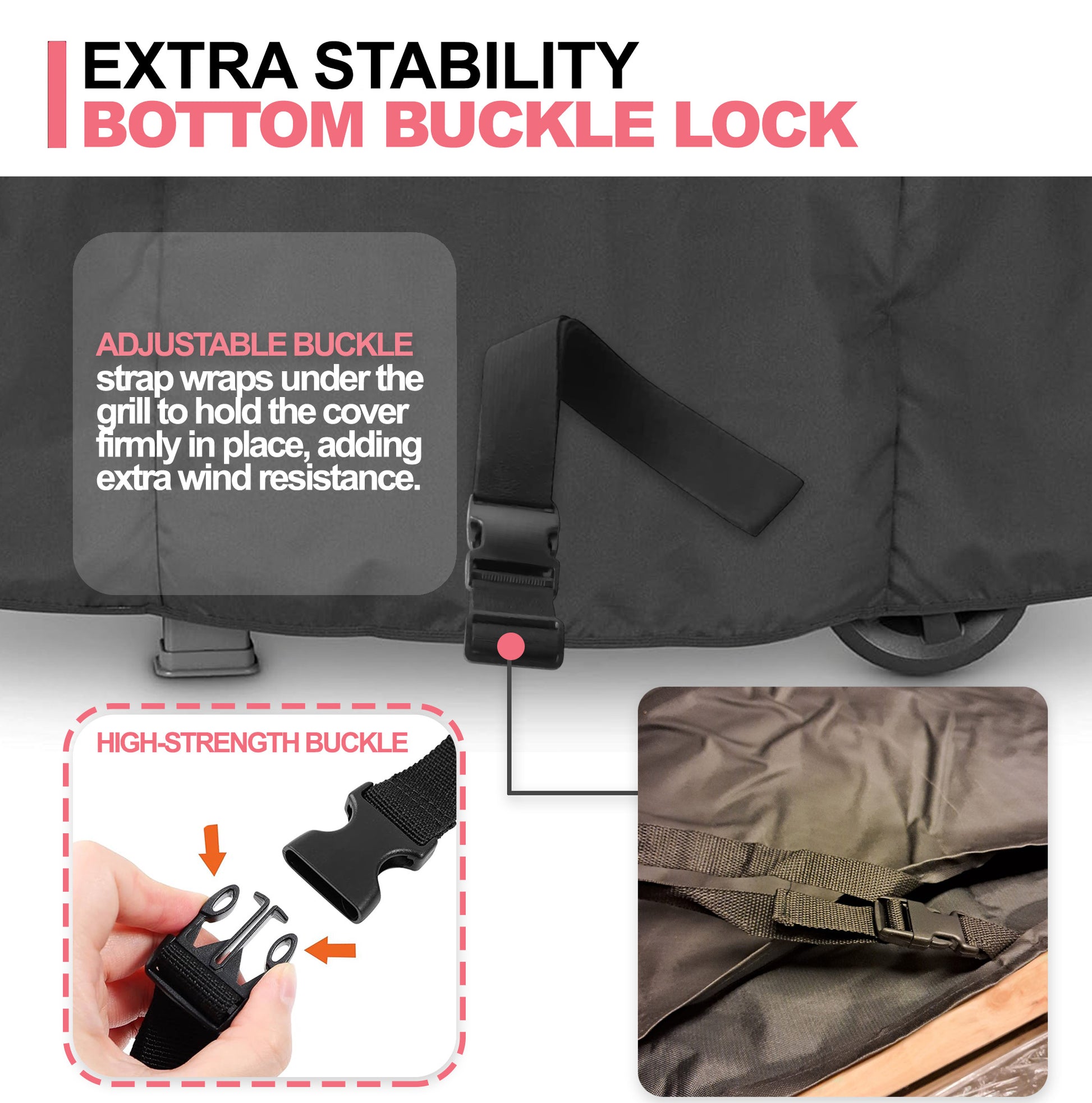 ✅【Säker passform】➤ Överdraget har en rem med spänne som fästs under grillen, samt kardborreband på båda sidor, vilket säkerställer att det sitter på plats även i stark vind.