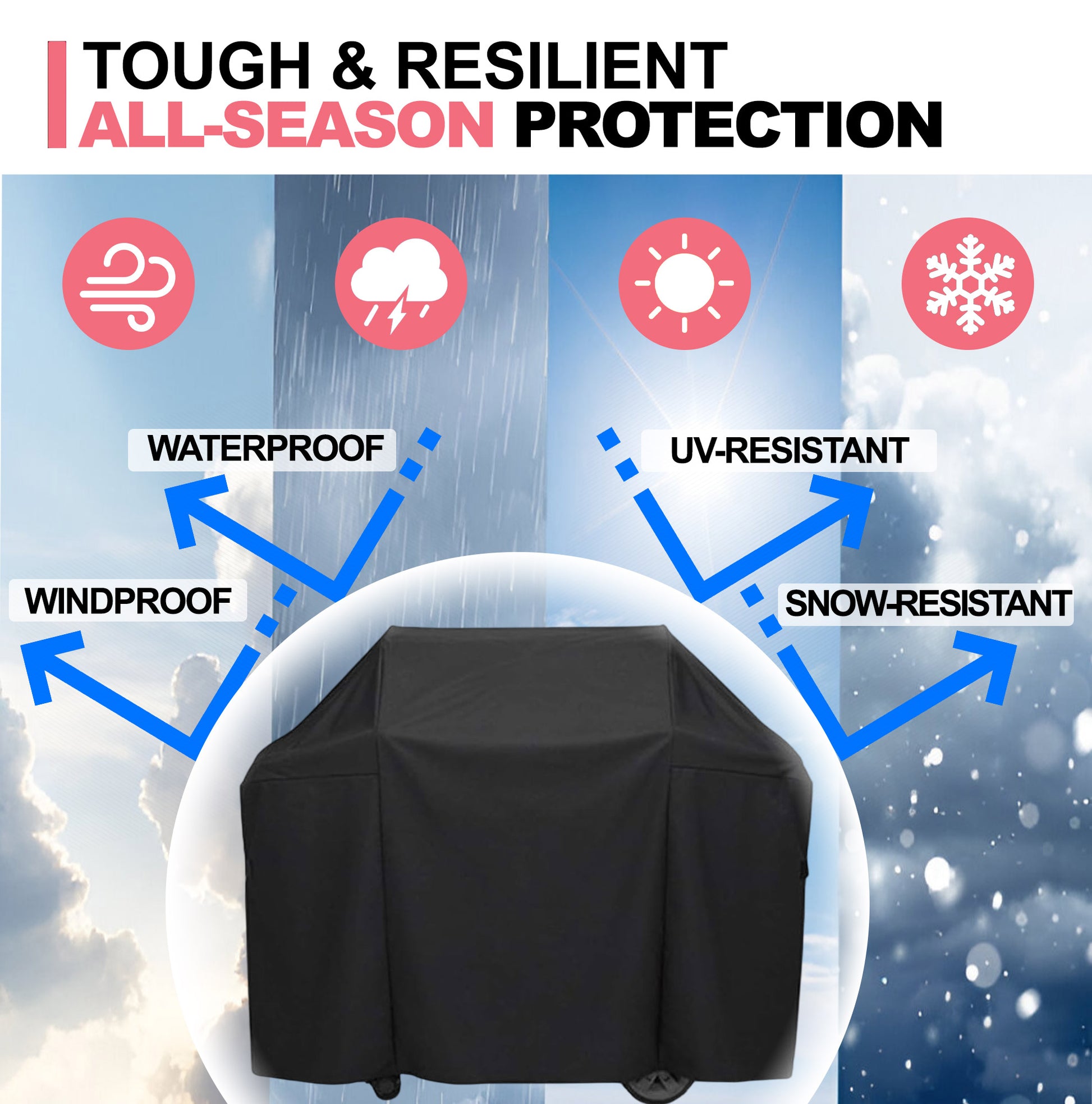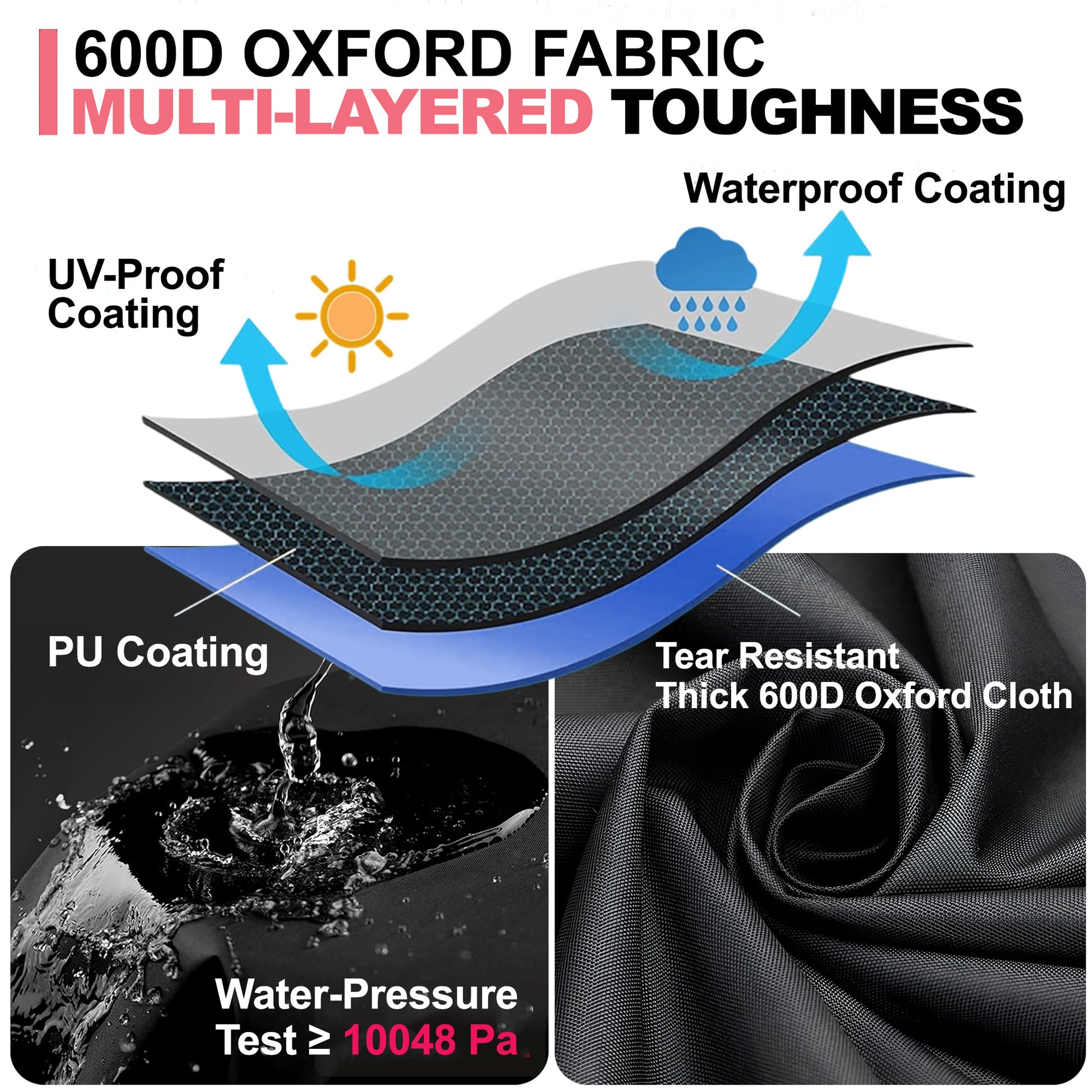 ✅【Högkvalitativt 600D Oxford-tyg】➤ Vårt grillöverdrag är tillverkat av slitstarkt, färgbeständigt 600D Oxford-tyg med en vattentät PU-beläggning för långvarigt skydd och hållbarhet. Med högkvalitativa förstärkta sömmar överträffar detta överdrag vanliga OEM-alternativ både i styrka och tillförlitlighet. Tjockare och tyngre än de flesta överdrag, ger det förbättrat skydd mot UV-strålar, regn, snö, damm och andra väderförhållanden—så att din grill är skyddad året runt.